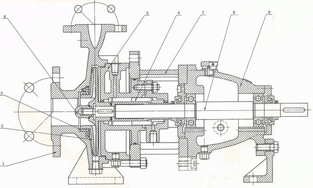 離心泵是由許多零件組成的,根據工作時各部件所處的工作狀態,大致可以分成三大類型:轉動部件、固定部件和交接部件。