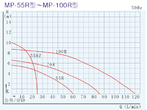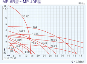 【MP型塑料微型磁力驅動循環泵】性能曲線圖:
