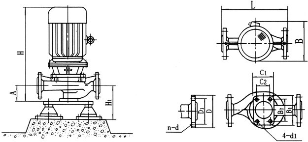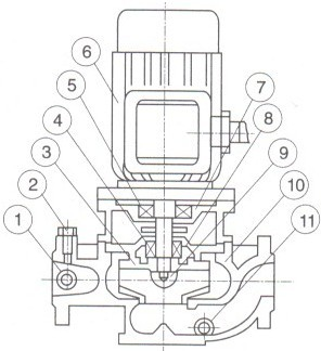 1.泵為立式結構,進出口口徑相同,且位于同一中心線上,可象閥門一樣安裝于管路之中,外形緊湊美觀,占地面積小,建筑投入低,如加上防護罩則可置于戶外使用.