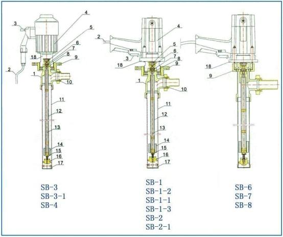 SB型鋁合金防爆電動(dòng)抽液泵結(jié)構(gòu)圖:
