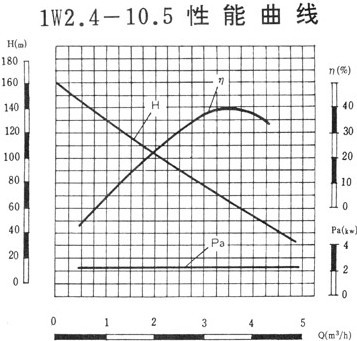 【鑄鐵單級旋渦泵1W型】性能曲線圖: