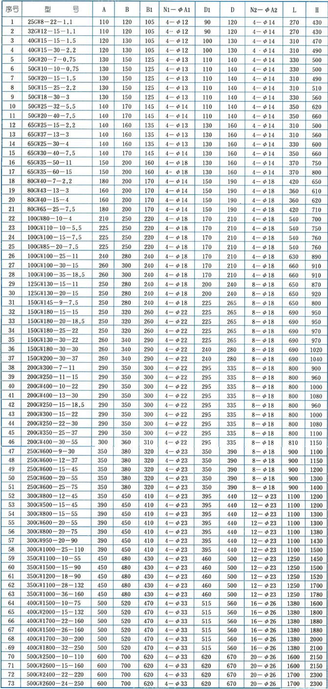 GWP不銹鋼立式管道排污泵性能參數(shù):