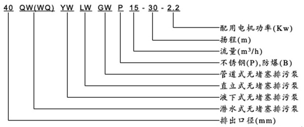 GWP不銹鋼立式管道排污泵型號意義: