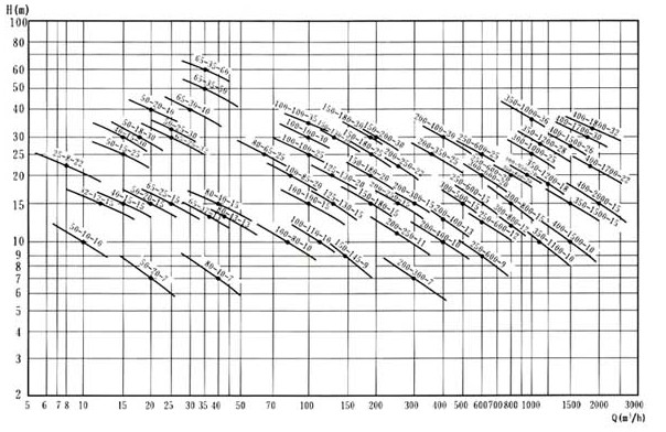 GWP不銹鋼立式管道排污泵性能型譜圖: