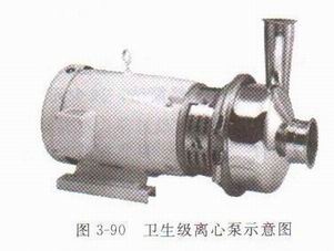 (1)離心式衛生泵、離心泵的兩個主要部件為殼體和葉輪(圖3-90)。葉輪使流體加速,殼體用于排液并把速度轉變為壓力。離心泵還用于變流量要求?梢圆捎霉澚骰蜣D速調節。節流需要一個排液管上設置可調閥門,這是一種昂貴的流量調節方式,缺點是需要提高系統壓力,浪費能量。