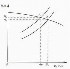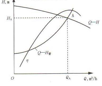 江同以系統中泵的性能曲線與管路性能曲線,用同樣的比例遲會在同一張圖上,則這兩條曲線的交點A稱為系統的工作。如圖6-1所示。A點即在泵的Q—H曲線上,也在管路的 Q—H管曲線上。從泵角度講,QA、HA表示以流量QA通過泵,由泵給液體提供能量是HA;從管路角度講QA、HA表示以流量QA通過管路時,管路所需要的能量是HA。即Q泵+Q管=QA,H泵=H管=HA,所以在A點工作時,工作穩定,稱為系統的工作點。