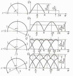 往復(fù)泵瞬時(shí)流量不均勻系數(shù)&Q1、&Q2與缸數(shù)、作用數(shù)、