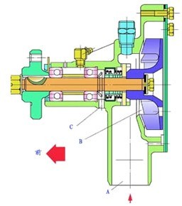A-進(jìn)水口 B-水泵內(nèi)腔 C-泄水孔