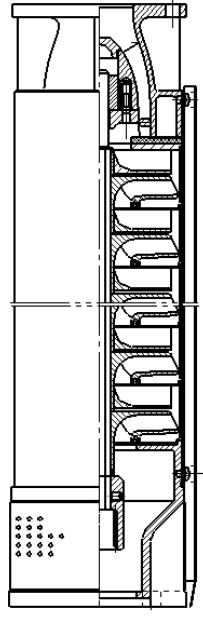 圓柱形反導葉導流殼的形狀和圓柱形葉片的葉輪基本相同,實際上圓柱形反導葉導流殼也屬于節段式導流殼,只不過它取消了正導葉,或者說把正導葉的進口邊退縮到反導葉的進口邊上了。