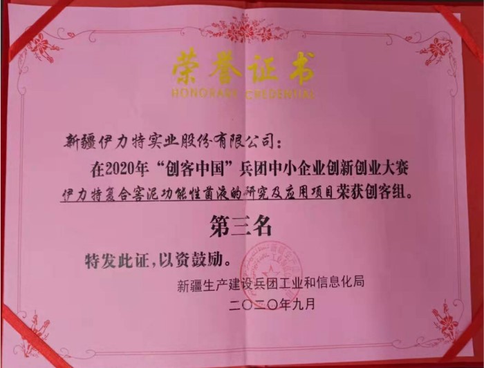 15、2020年9月,“伊力特復(fù)合窖泥功能性菌液的研究及應(yīng)用”項目榮獲創(chuàng)客組第三名;