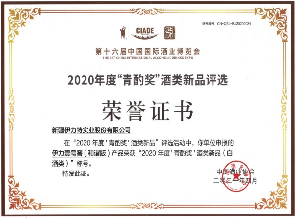 16、2021年1月,伊力壹號窖榮獲2020年度“青酌獎”酒類新品;